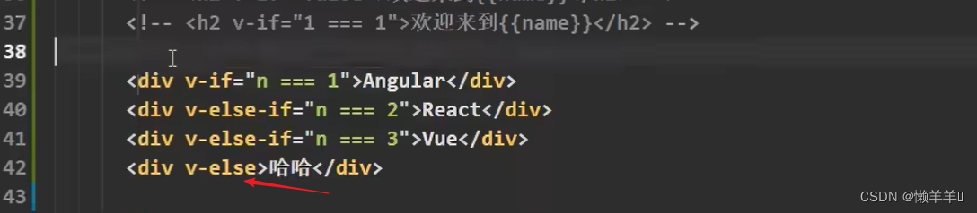 如果需要使用v-if和v-else-if或v-else要求中间必须连贯,也就是这四个div必须挨在一起