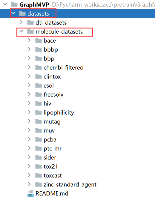将下载的数据文件夹名字改为molecule_datasets,然后放在dataset文件夹下面