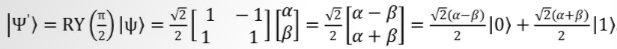 假设,RY(π/2)门作用在任意量子态|ψ〉= α|0〉+ β|1〉上面,得到新的量子态为: