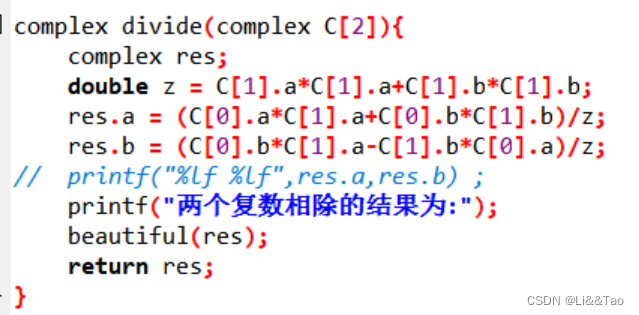 // printf("%lf %lf",res.a,res.b) ;printf("两个复数相除的结果为:");beautiful(res); return res;