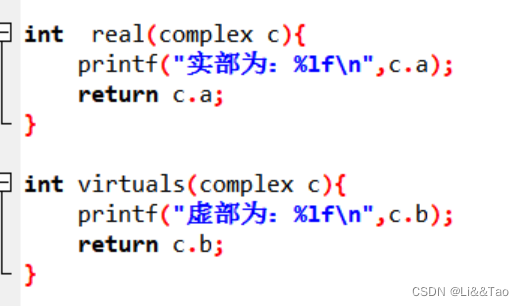 }int real(complex c){printf("实部为:%lf\n",c.a);return c.a;