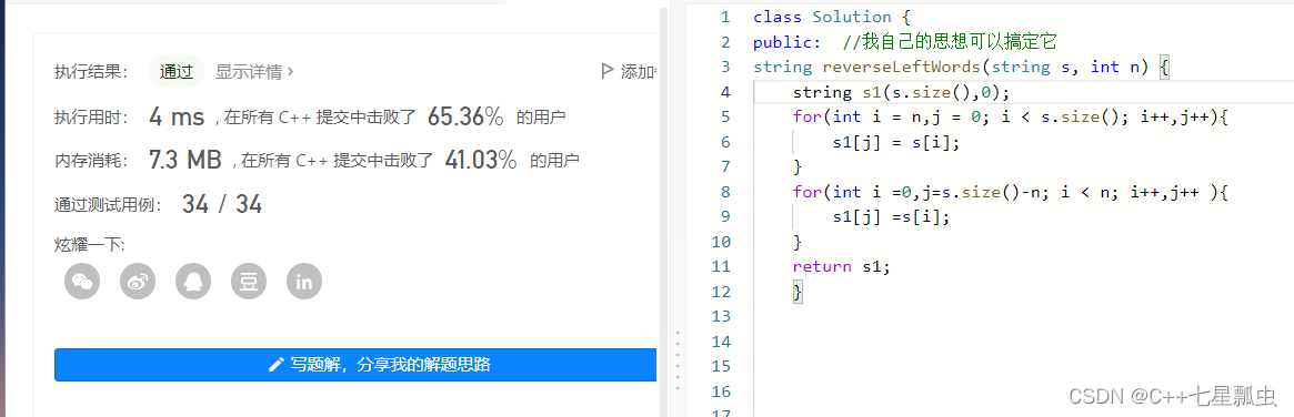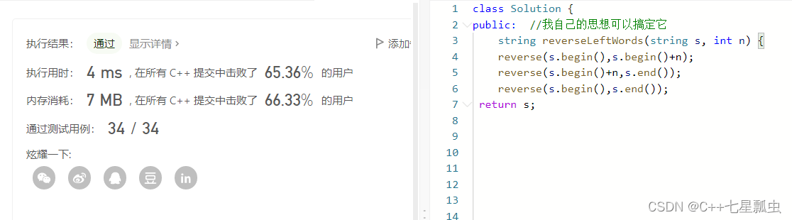 题目解析: 我们可以采用,0到i 个翻转,然后 i到n 翻转,再实现,0到n的翻转。这样就实现了,字符串前i个元素的左旋转。
