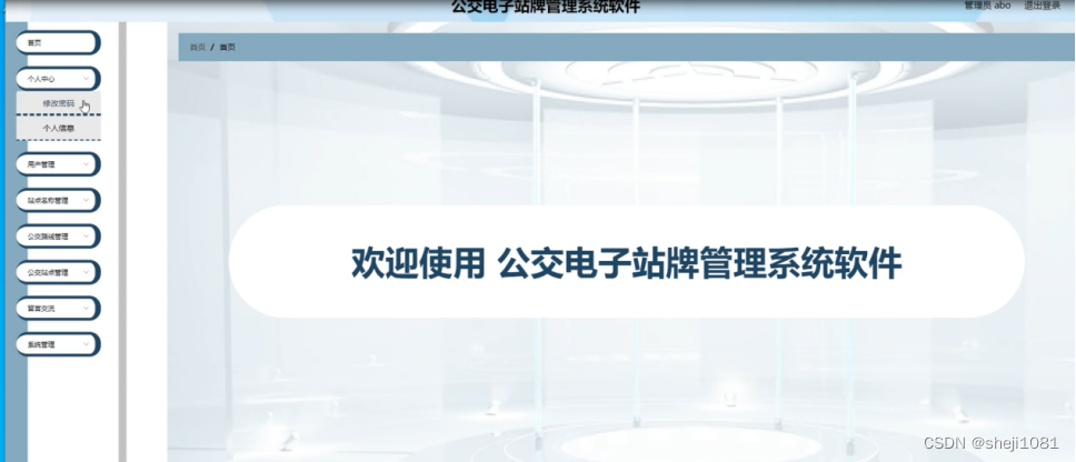 管理员登录系统后,可以对首页、个人中心、用户管理、站点名称管理、公交路线管理、公交站点管理、留言交流、系统管理等功能进行相应的操作管理,如图5-8所示。