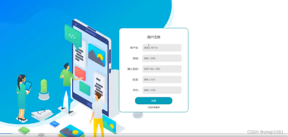 用户注册,在用户注册页面通过填写用户名、密码、确认密码、姓名、手机等信息进行注册操作,如图5-2所示。
