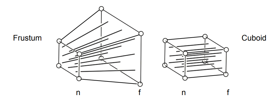 如前面的图所示,在透视投影中,我们把近平面和远平面之间形成的几何体叫做视锥体(frustum)。