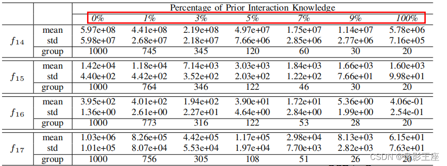 问题分解导致原始问题的过度简化,从而将CCEA陷入到局部最优;合并两组变量形成一个更大的组,使新的子问题更难解决,CCEA需要更长的时间才能收敛。因此,我们假设检测更多的内在变量交互作用并不总是能提高CCEA的性能,所以提出了第二个问题。