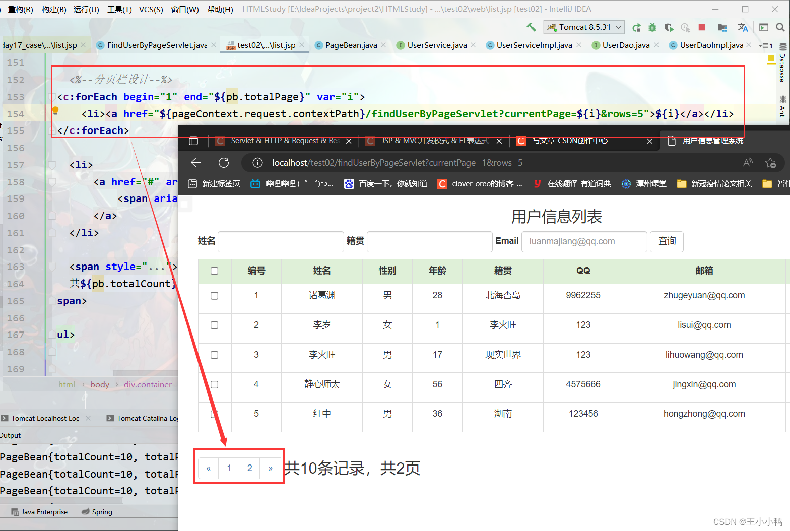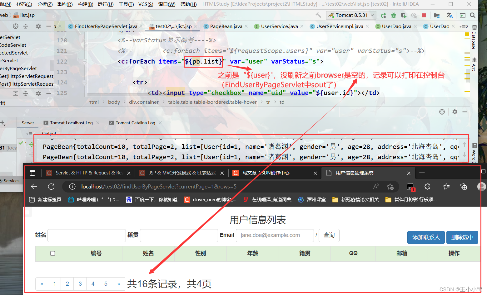 试着打印UserListServlet,