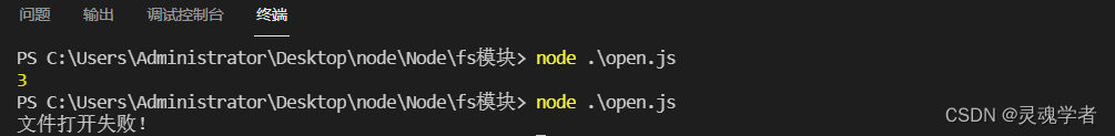 fs.open(__dirname+'/reads.txt','r',function(err,fd){if(err){return console.log('文件打开失败!');}// fd是文件描述符,文件标识console.log(fd);