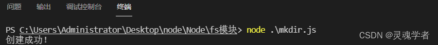fs.mkdir( __dirname + '/demo',function(err){if(err){return console.log("创建失败!");}console.log("创建成功!");