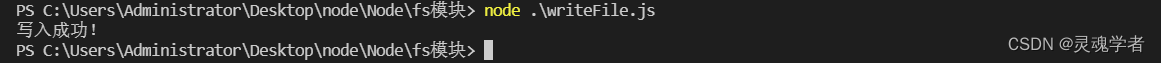 fs.writeFile('./read.txt','写入syan123',function(err){if(err){console.log("写入失败:"+err.message);}console.log("写入成功!")
