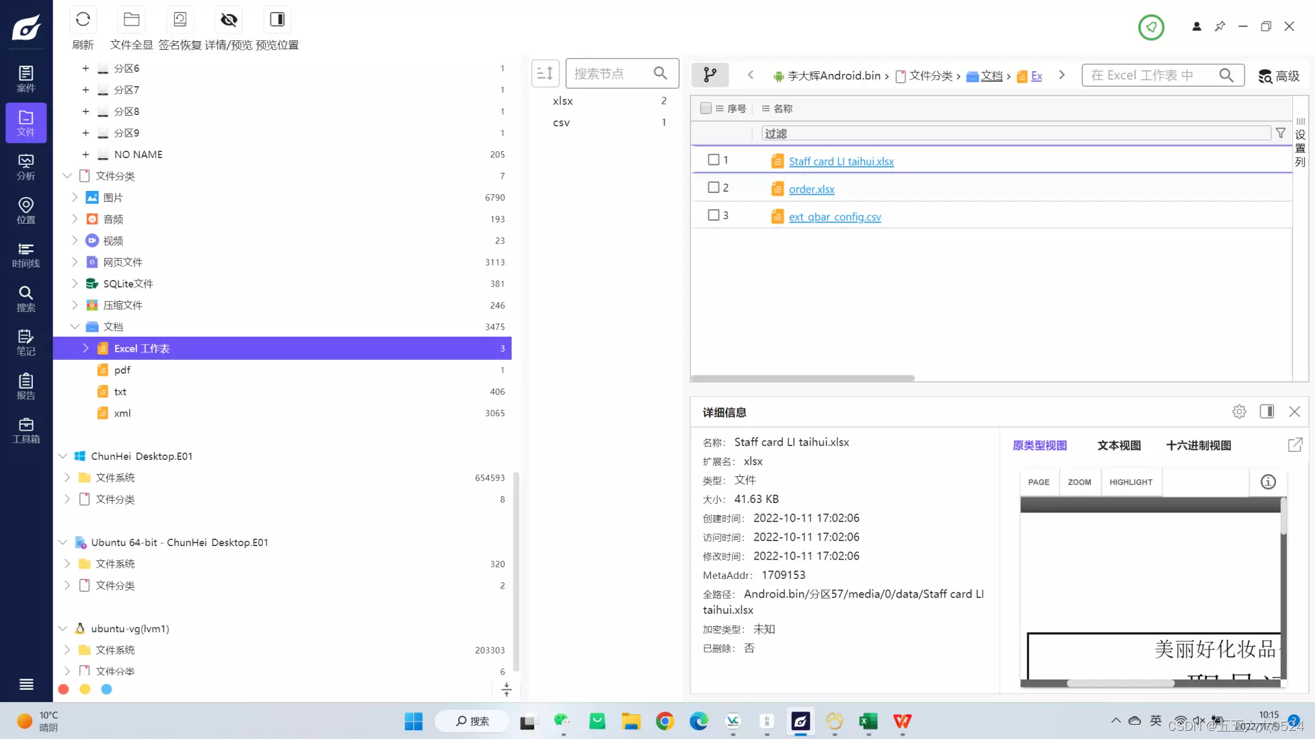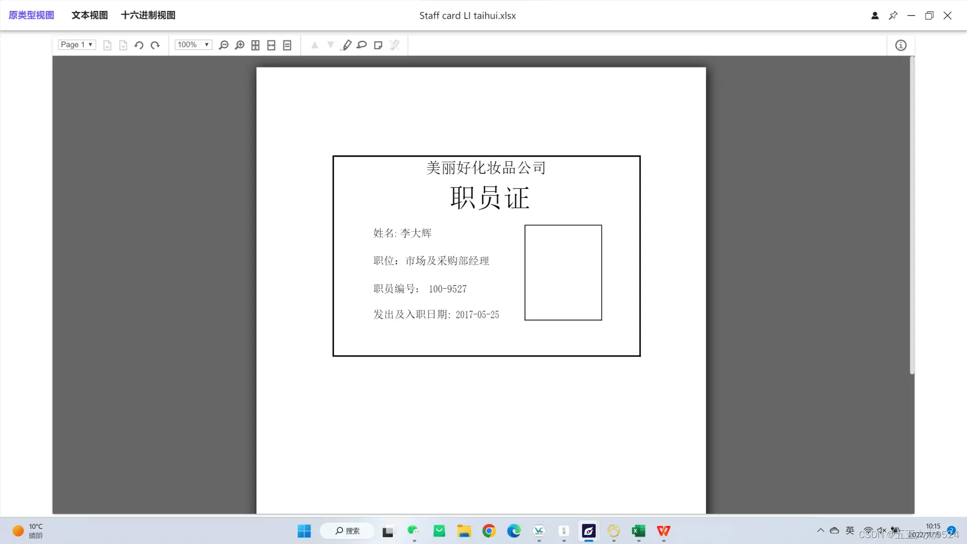 文档中找到一个Staff card LI taihui.xlsx