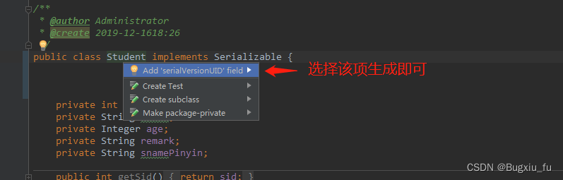 将光标定义到类名,按alt+ enter,出现如下快捷菜单