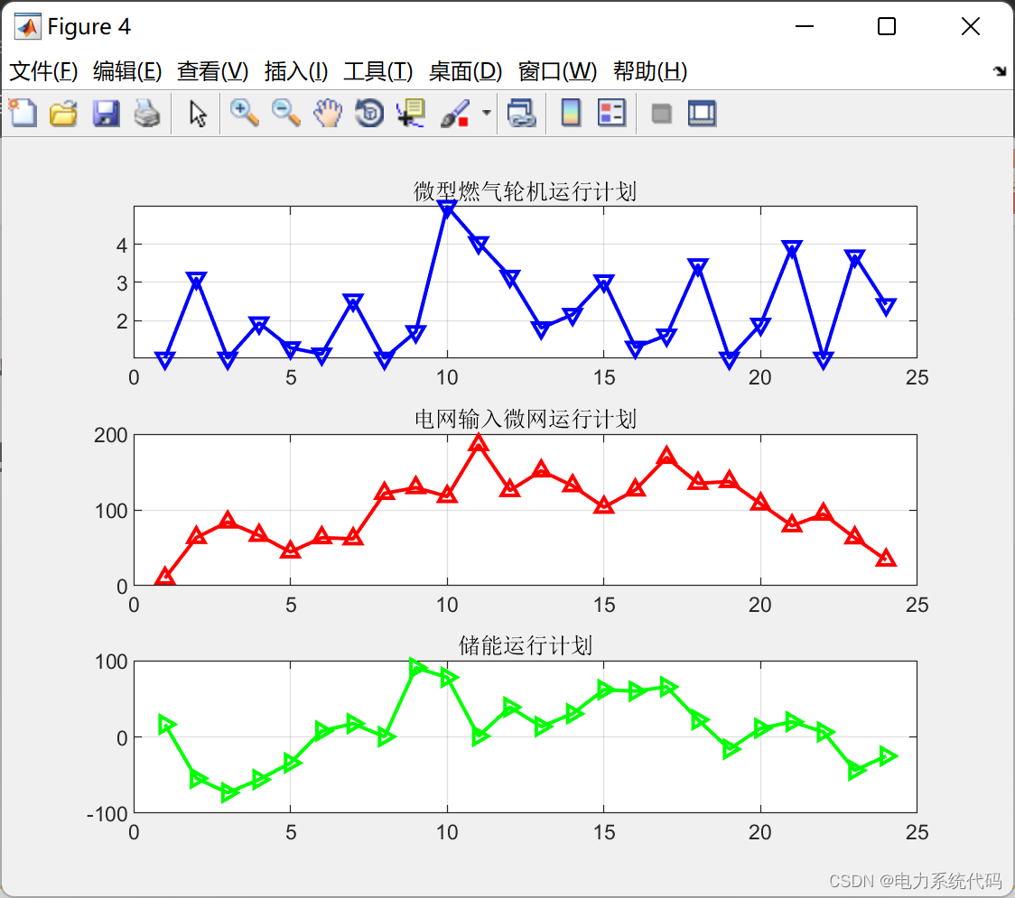 % v(i,j)=randn;v(i,j)=0.0;if j<25x(i,j)=MTMinPower+rand()*(MTMaxPower-MTMinPower);elseif j>24&&j<49x(i,j)=GridMinImportPower+rand()*(GridMaxImportPower-GridMinImportPower);elseif j>48&&j<73x(i,j)=StorageMaxChargingPower+rand()*(StorageMaxDischargingPower-StorageMaxChargingPower);endend