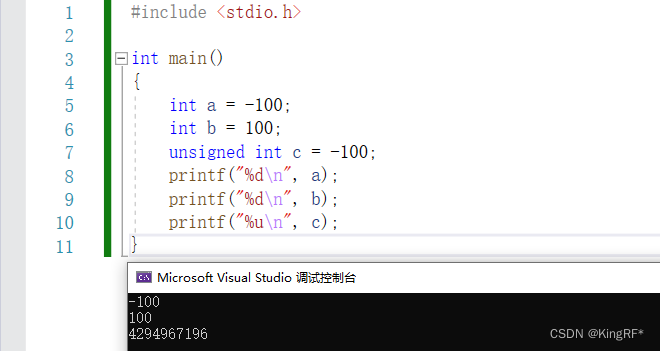 unsigned无符号,当对一个无符号数据赋值一个负数时,显示和存储的值会不一致;