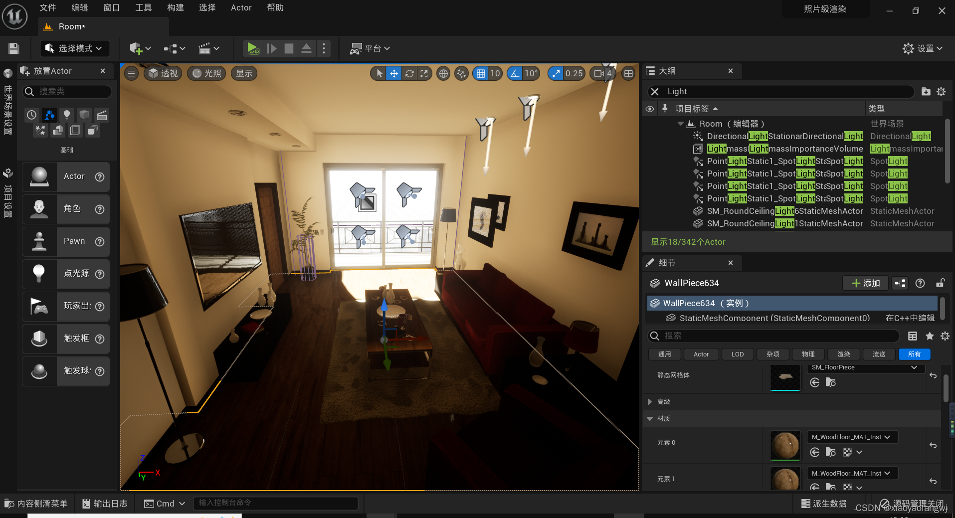 UE5笔记【五】操作细节——光源、光线参数配置、光照图修复