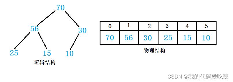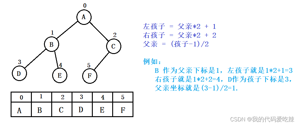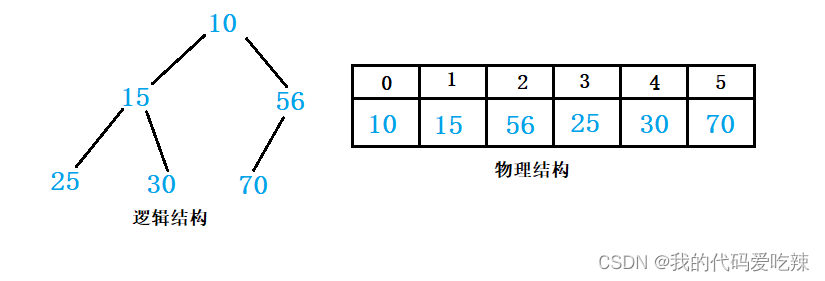 普通的二叉树是不适合用数组来存储的,因为可能会存在大量的空间浪费。而完全二叉树更适合使用顺序结构存储。现实中我们通常把堆(一种二叉树)使用顺序结构的数组来存储,需要注意的是这里的堆和操作系统虚拟进程地址空间中的堆是两回事,一个是数据结构,一个是操作系统中管理内存的一块区域分段。