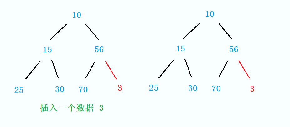 在以堆的角度来看(小堆)为例,将新插入的值看作孩子与其父亲位置的值比较,如果比父亲位置的值还要小,那就将该值与父亲位置的值进行交换,交换后将父亲位置当作新的孩子,继续与其父亲位置的值比较,这样一直向上比较并交换,直到父亲位置的值比自己小或该位置已经没有父亲了,调整结束。