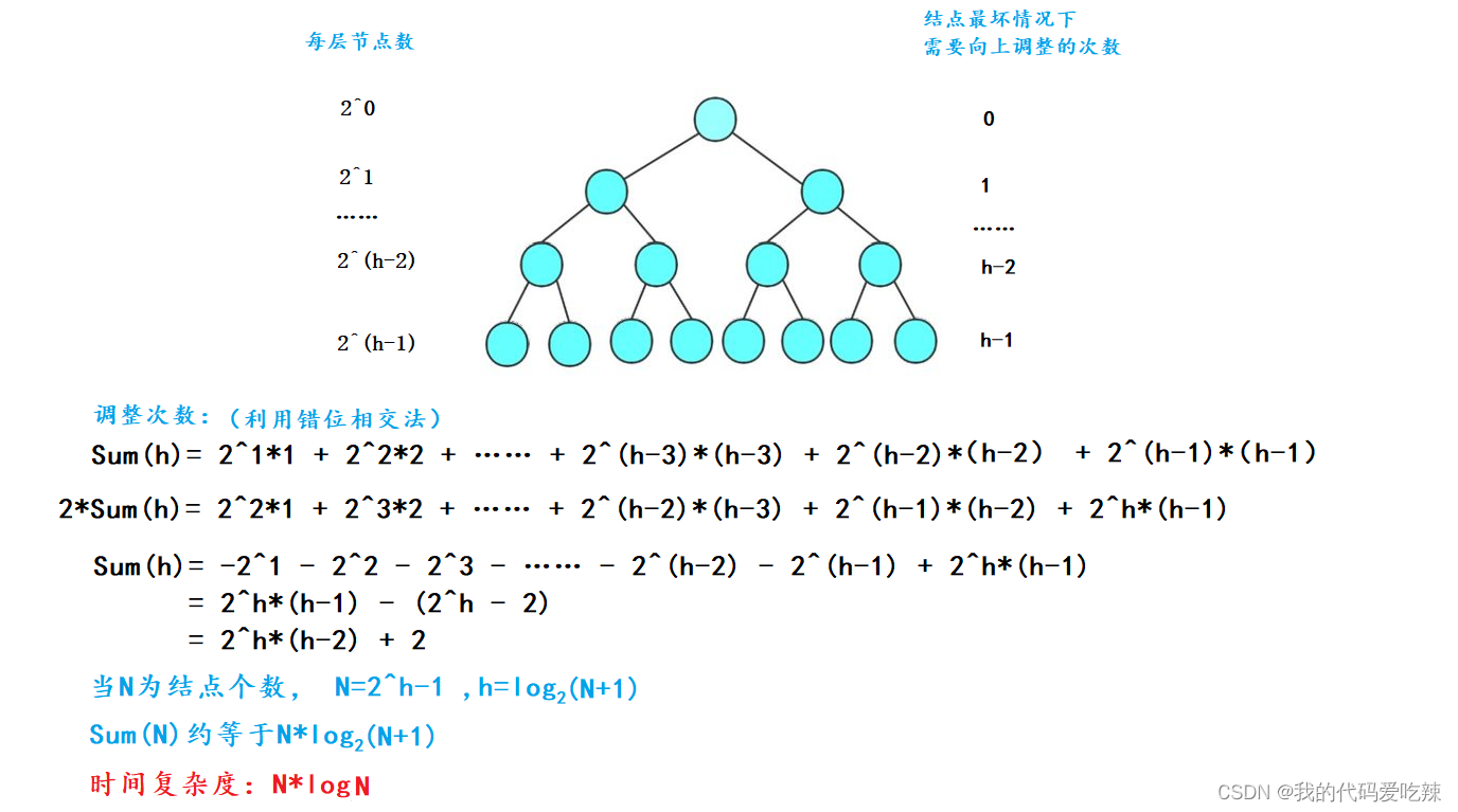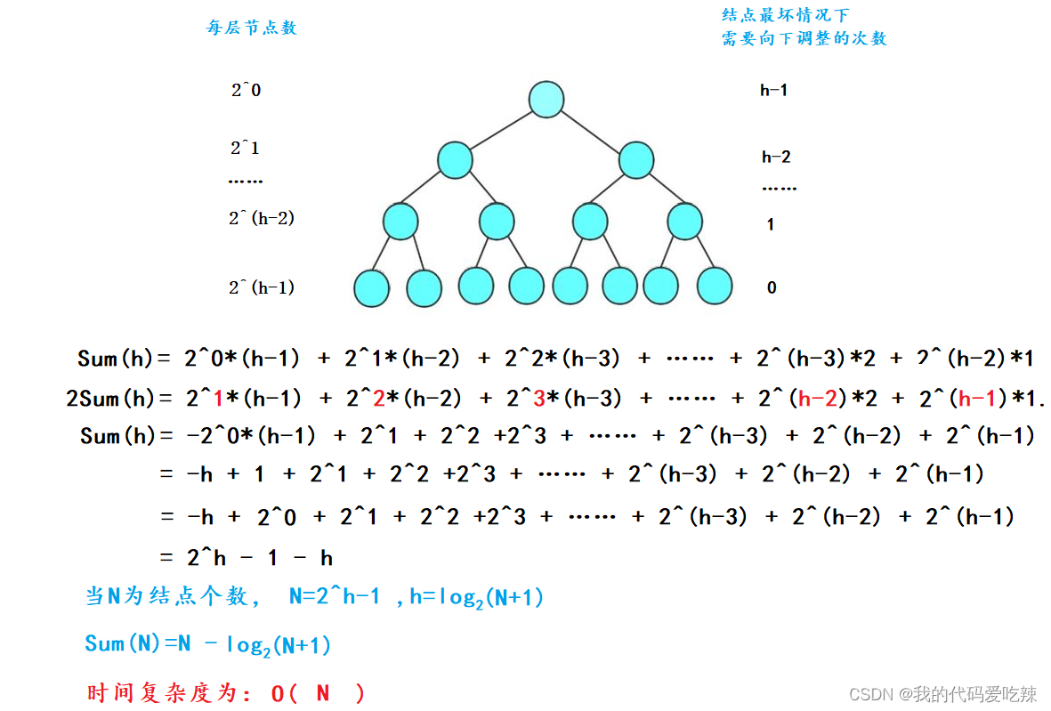 🥟(2)向下调整算法,直接建堆的时间复杂苏分析: