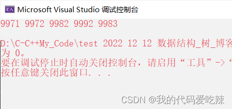 {//造数据,造1000个10000以下的随机数FILE* pfile = fopen("test.txt", "w");srand(time(0));for (int i = 0; i < 1000; i++){fprintf(pfile, "%d\n", rand() % 10000);}fclose(pfile);//建小堆Heap hp;HeapInit(&hp);int* arr = (int*)malloc(sizeof(arr[0]) * k);for (int i = 0; i < k; i++){arr[i] = INT_MIN;}HeapCreate(&hp, arr, k);//topK 选数FILE* pfile_ = fopen("test.txt", "r"); for (int i = 0; i < 1000; i++){int tmp = 0;fscanf(pfile,"%d", &tmp);int hptop = HeapTop(&hp);//文件中读取的数据与堆顶数据比较if (tmp > hptop){hp.a[0] = tmp;AdjustDown(hp.a, k, 0);}}fclose(pfile_);Print(&hp);HeapDestroy(&hp);