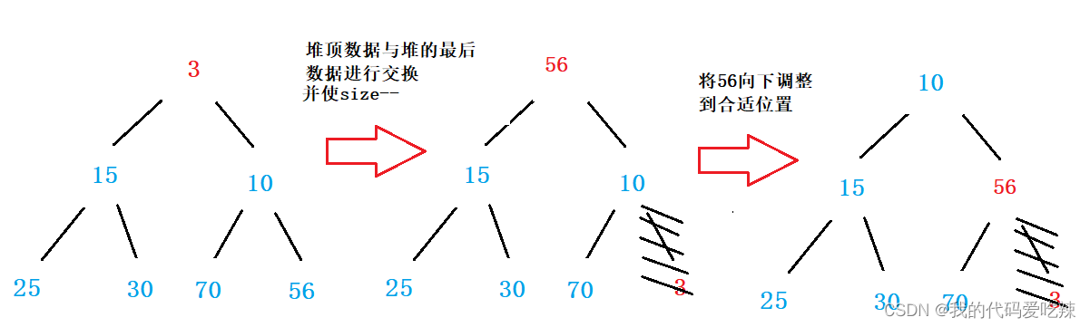 {assert(php);assert(php->size > 0);Swap(&php->a[0], &php->a[php->size]-1);php->size--;AdjustDown(php->a, php->size, 0);