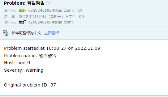 node1端创建大于三个连接数,等待zabbix发出警告并发送邮件。但是想要发送邮件还需要开启Report problems to Zabbix administrators,如未开启需要开启该项。