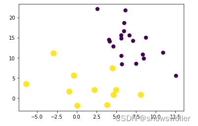 plt.scatter(samples[:,0],samples[:,1],c=labels+1.5,linewidths=np.power(labels+1.5, 2))