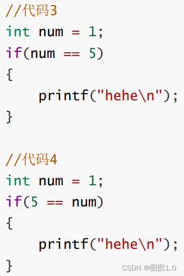 2、为了防止==写成=,即等于写成赋值,建议:常量和变量进行比较时,推荐将常量放在左边,一旦写成赋值就会报错。
