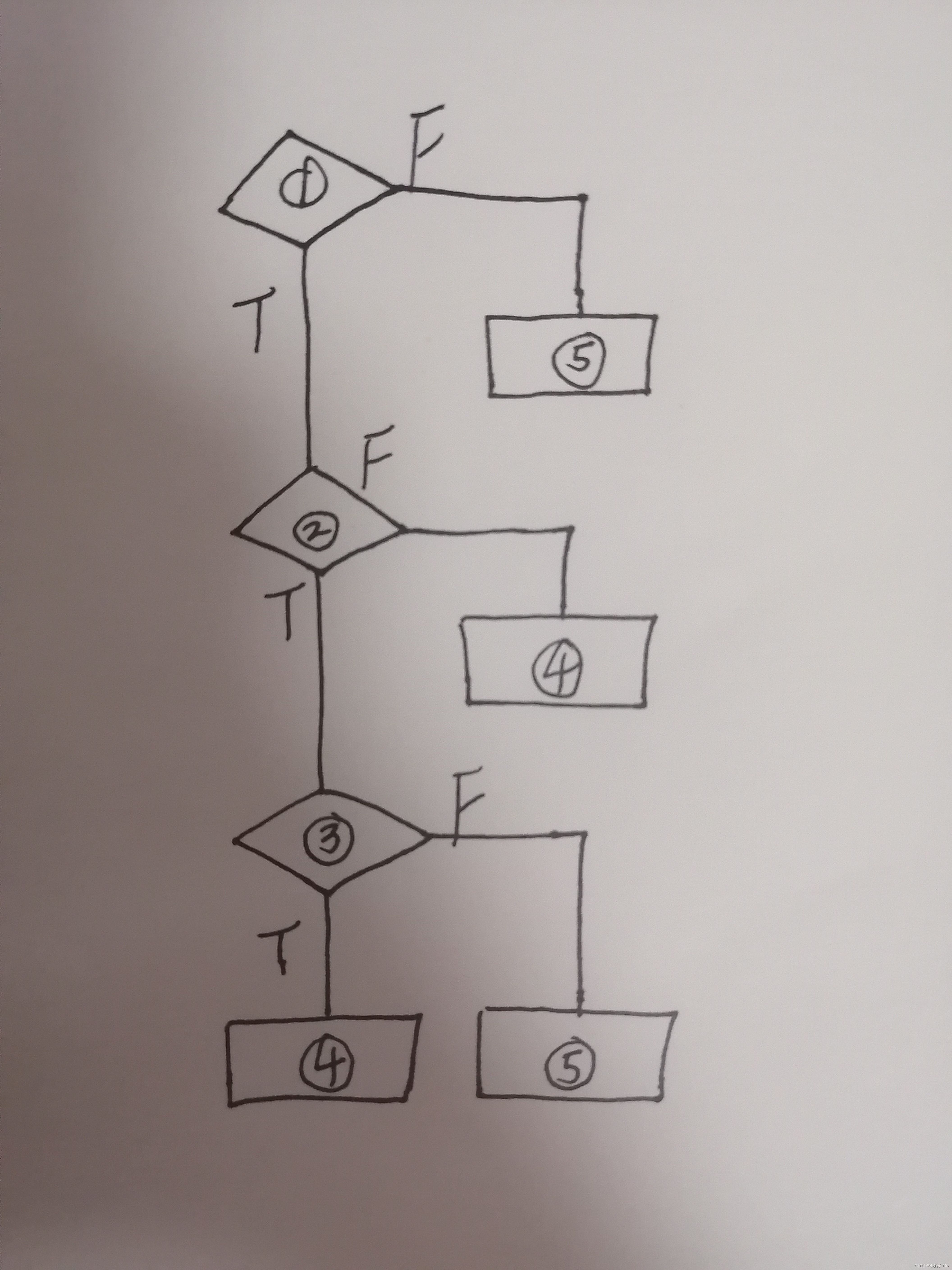 ③ 方法三,环形复杂度等于 P + 1,P是流图中判定节点的数目 3,判定节点由流程图看出。