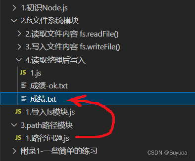 我现在的路径结构是这样的,我当前想在 1.路径问题.js 读取 成绩.txt
