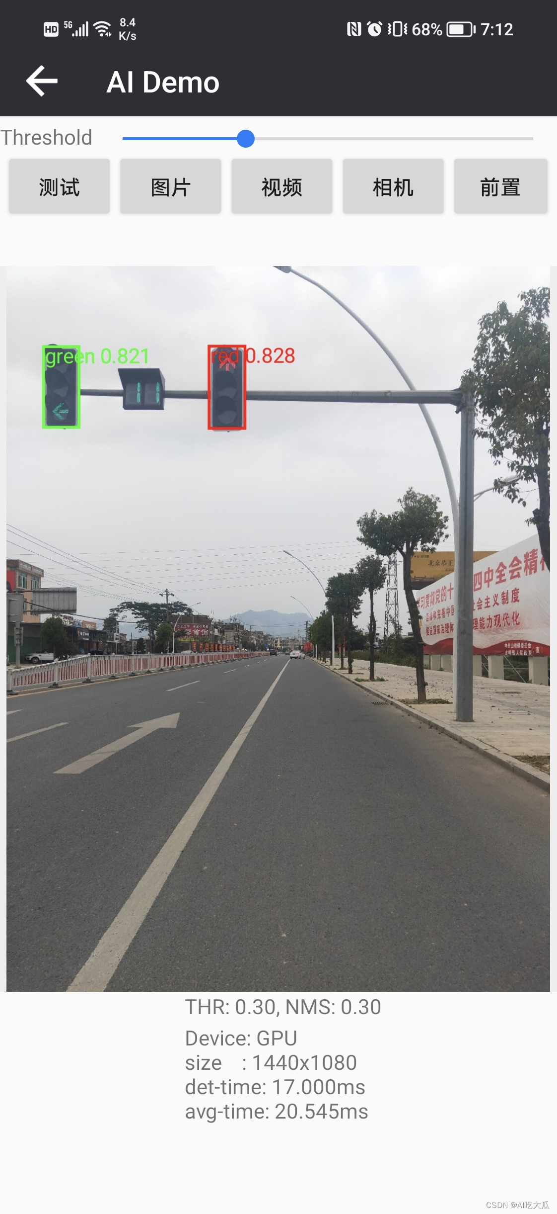 APP在普通Android手机上可以达到实时的红绿灯检测效果,CPU(4线程)约30ms左右,GPU约25ms左右 ,基本满足业务的性能需求。