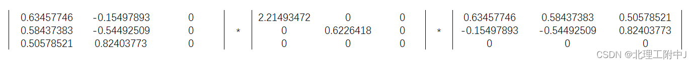 3个特征值对应的单位化的特征向量如下(每一列对应一个特征值,与上面的特征值相对应):
