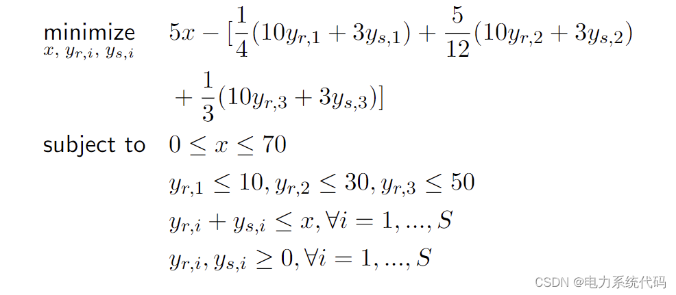 假设需求 d 是具有 S 个场景 (d1,...,ds) 的离散随机变量,每个场景 di 具有概率 pi。