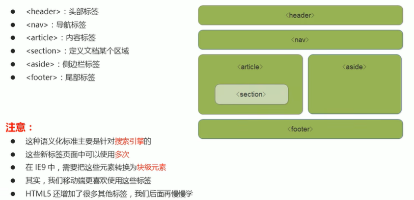 | 结构 | 结构用于对网页元素进行整理和分类,现阶段主要学的是HTML(身体) |
