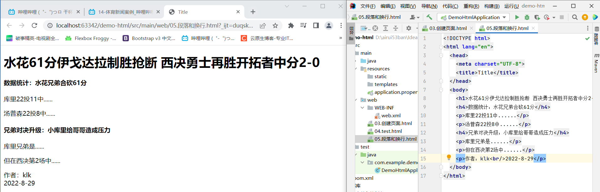 在网页中,要把网页中的内容分段显示,在html标签中,