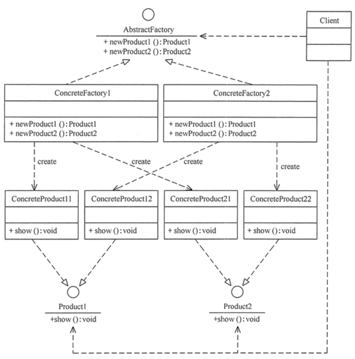 抽象工厂模式结构图如图所示: