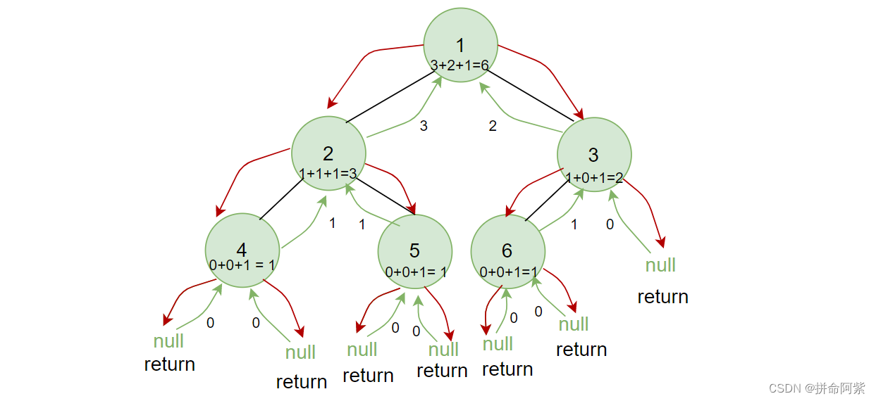 public int getLeafNodeCount(Node root) {if (isEmpty(root)) {return 0;}//如果一个节点的左子树和右子树都为null,说明这个节点就是叶子节点if (root.left == null && root.right == null) {return 1;}//将返回的叶子节点加起来return getLeafNodeCount(root.left) + getLeafNodeCount(root.right);