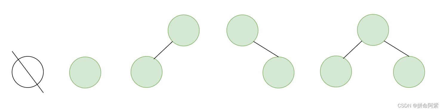 注:当一棵树的每个节点的度小于或等于二时,此树都为二叉树。当没有节点时也为二叉树