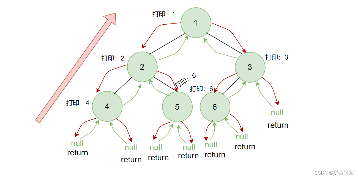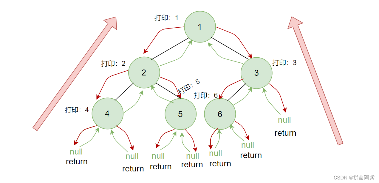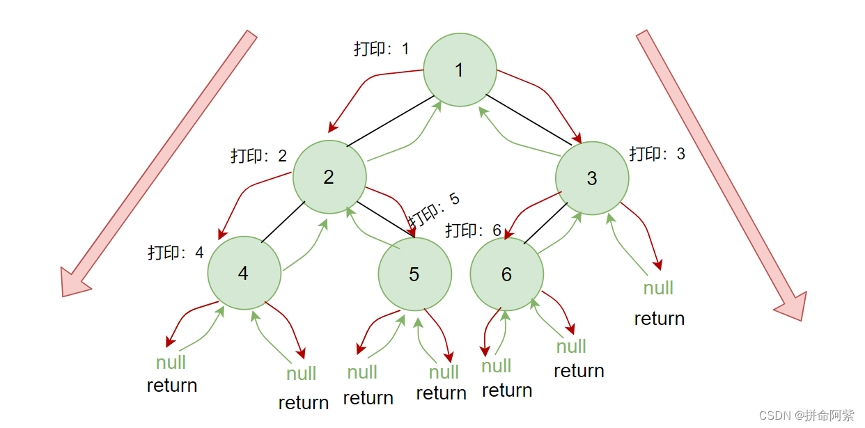 public void preOrder(Node root) {if (isEmpty(root)) {return;}//节点不为空,打印val值System.out.print(root.val+" ");//访问左子树preOrder(root.left);//访问右子树preOrder(root.right);
