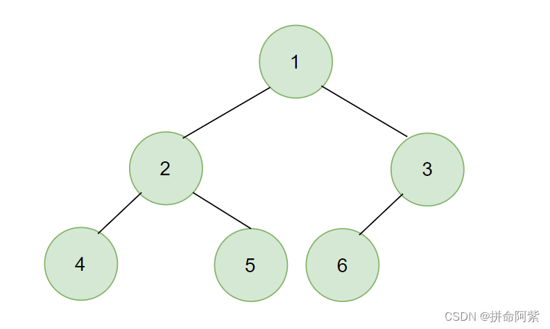 public Node createBinaryTree() {Node node1 = new Node(1);Node node2 = new Node(2);Node node3 = new Node(3);Node node4 = new Node(4);Node node5 = new Node(5);Node node6 = new Node(6);node1.left = node2;node1.right = node3;node2.left = node4;node2.right = node5;node3.left = node6;return node1;
