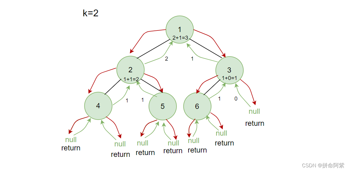 public int getKLevelNodeCount(Node root,int k) {if (isEmpty(root)) {return 0;}//当k=1时,就是我们要获取的第k层的节点个数if (k == 1) {return 1;}//递归到第k层return getKLevelNodeCount(root.left, k - 1)+ getKLevelNodeCount(root.right, k - 1);