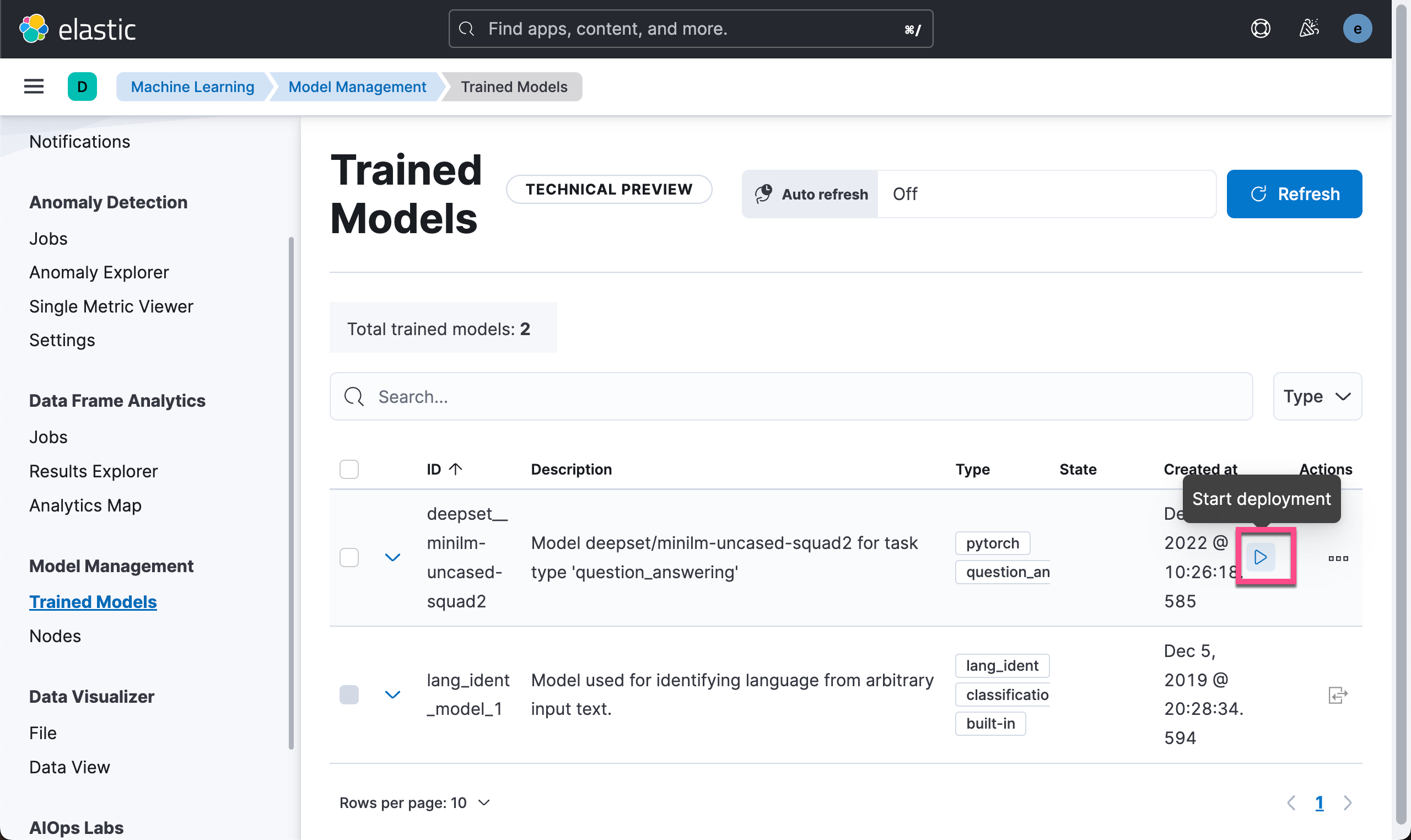 将 PyTorch 模型上传到你的集群后,你将能够将该模型分配给特定的机器学习节点,将其加载到内存中并启动本机 libtorch 进程。