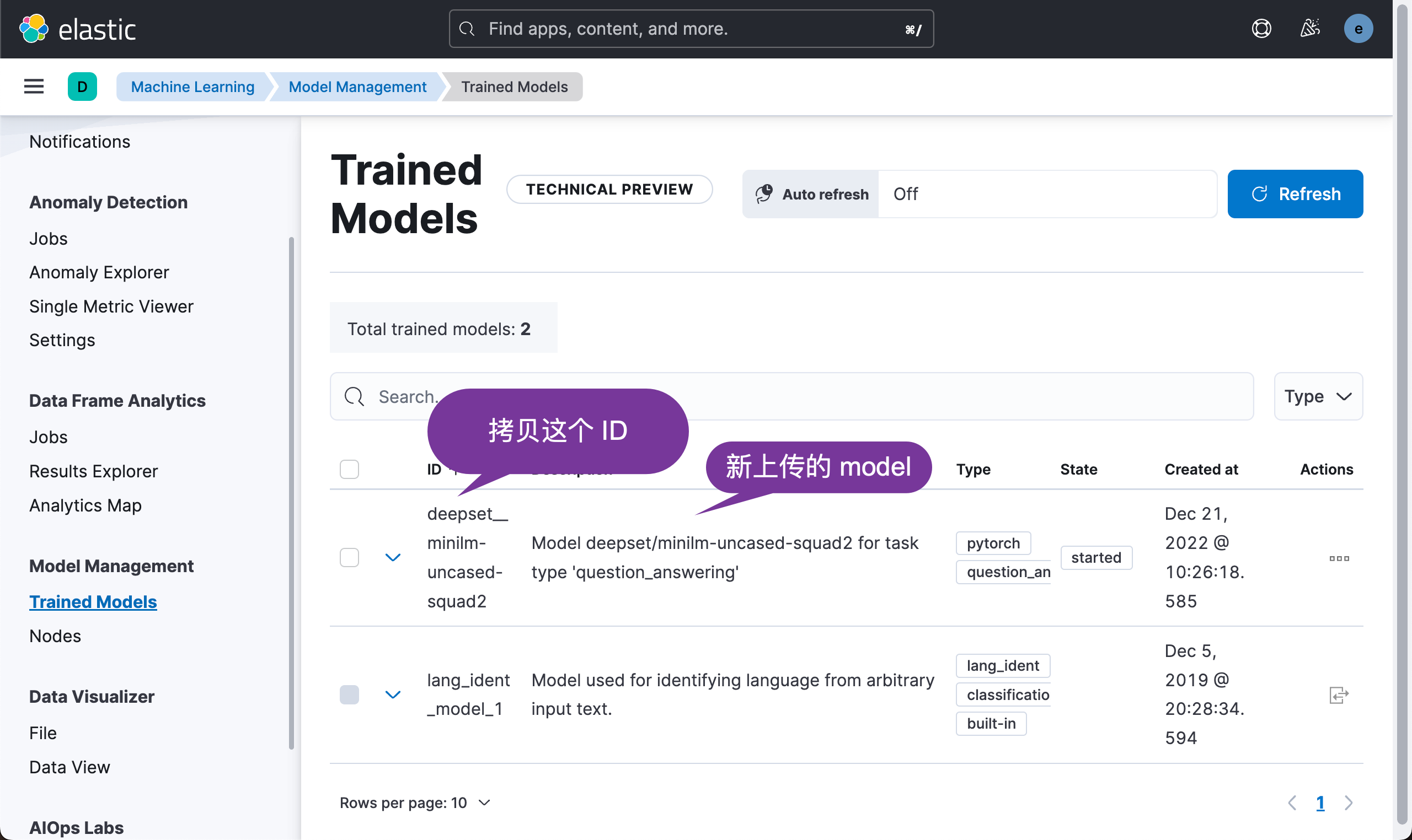 复制上面的模型 ID deepset__minilm-uncased-squad2。