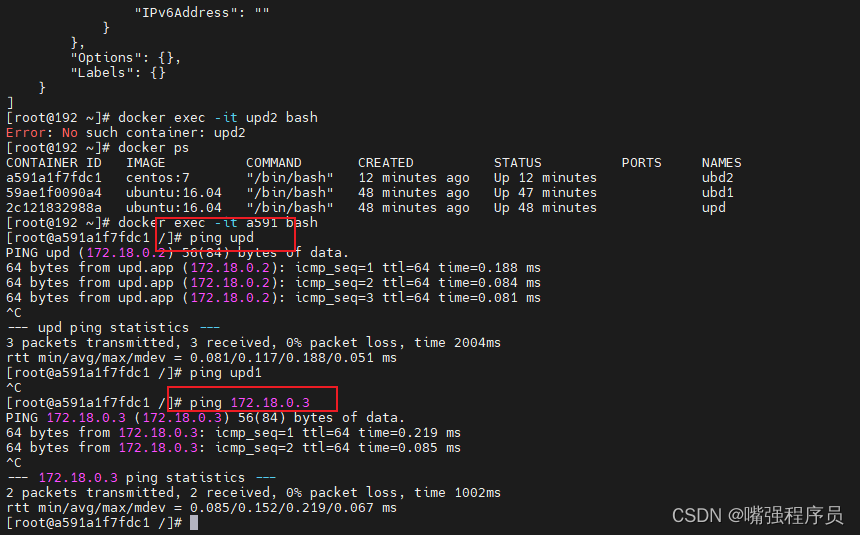 创建好容器后进行测试,测试是否可以通讯 下载一个contos镜像测试