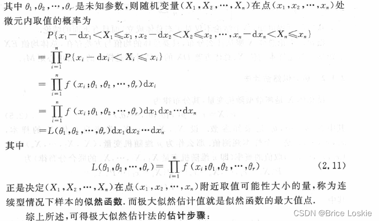 的概率(2. 6)或似然函数(2. 7)达到最大.即