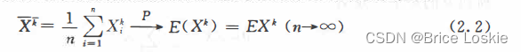 存在时,样本的k阶原点矩依概率收敛于总体的k阶原点矩,即