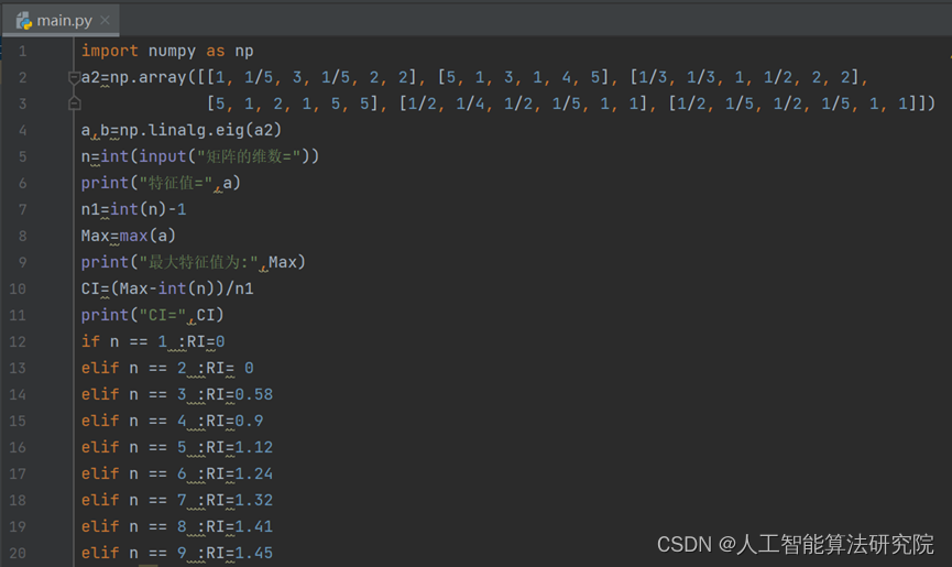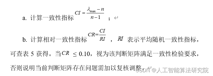 注:根据随机一致性比率C.R.的含义,当矩阵为一阶或者二阶时,C.R.一定为0,因此矩阵为一阶或者二阶时一定通过一致性检验,只需要计算出特征向量作为权重系数即可。