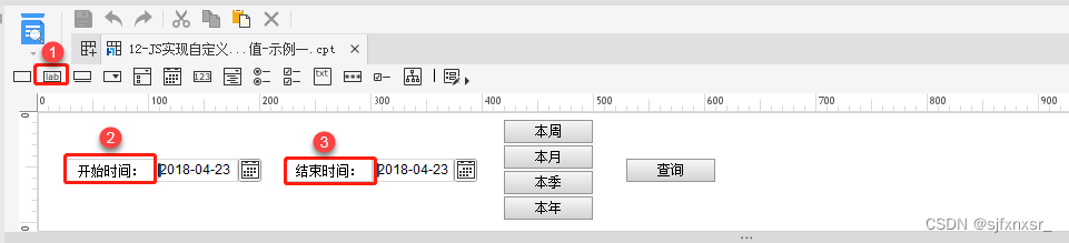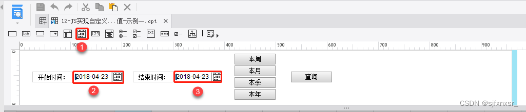 2)添加两个「日期控件」,控件名称分别为:start_time、end_time,如下图所示:
