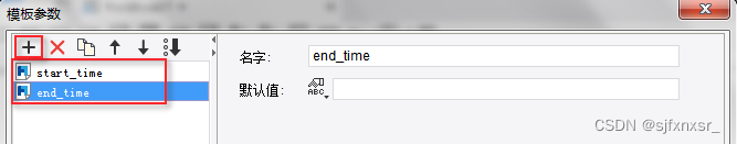 1)新建一个工作簿,添加「模板参数 」start_time和end_time ,如下图所示: