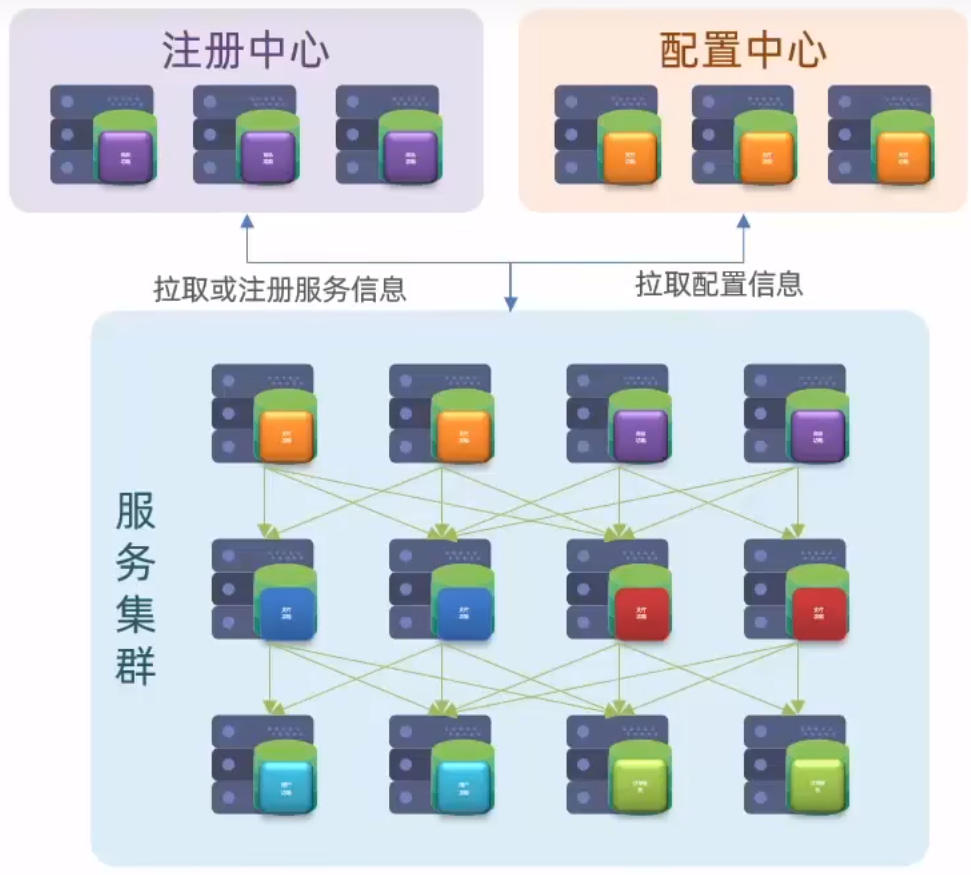 配置中心:将所有服务的配置信息存储在此,服务可以去拉取配置信息。