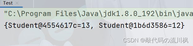 public class Test {public static void main(String[] args) {HashMap map = new HashMap<>();map.put(new Student(),12);map.put(new Student(),13);System.out.println(map);}